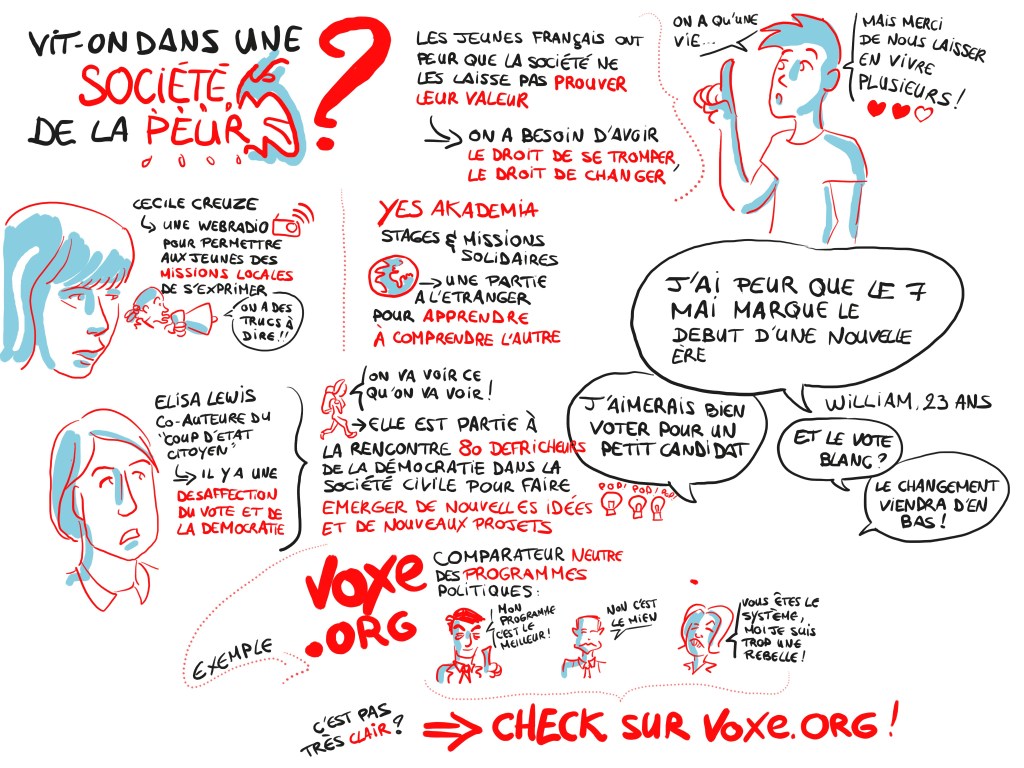 J’ai été invité par la ZEP et la BPI à scriber pendant une soirée débat sur la place des jeunes dans la présidentielle.