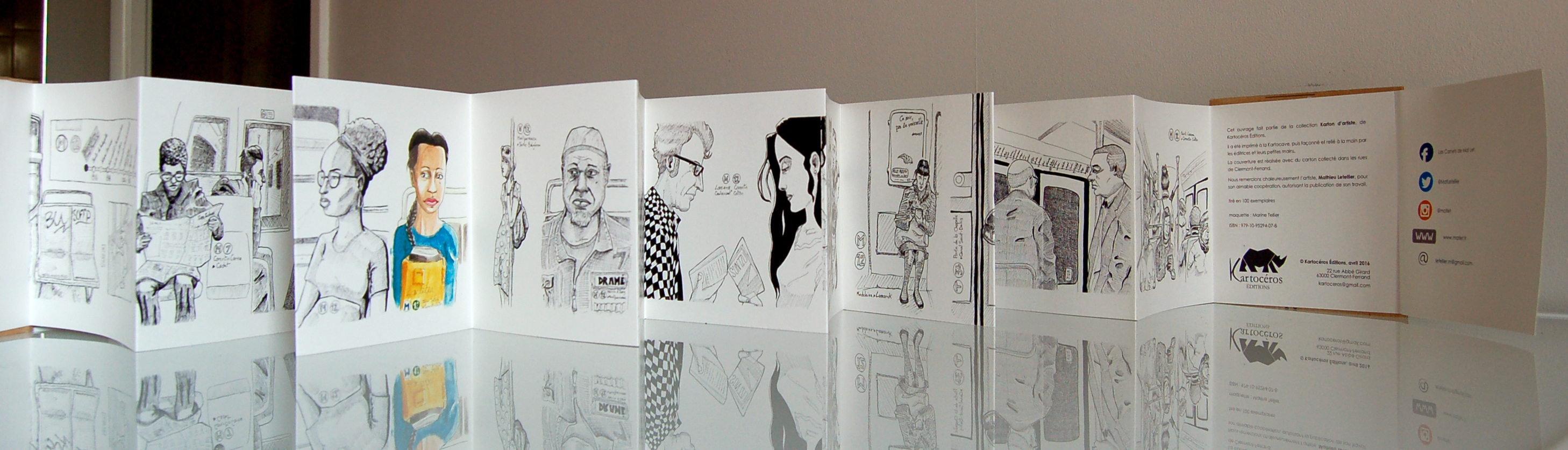 La maison d’édition Kartocéros a repris mes croquis du métro pour en faire un recueil au format leporello (accordéon).