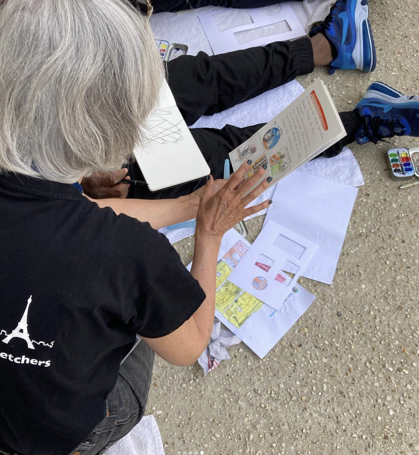 Avec une équipe issue du collectif Urban Sketchers Paris (Marion Rivolier, Marielle Durand, Brigitte Lannaud Levy, Tula Moraes et Claire Archenault) nous avons mené plusieurs cycles d’ateliers de dessin sur le vif pour les détenus de la Maison d’Arrêt de la Santé. Nous étions en outre accompagnés par une photographe, Carole Charbonnier, et un vidéaste, David Rivolier.