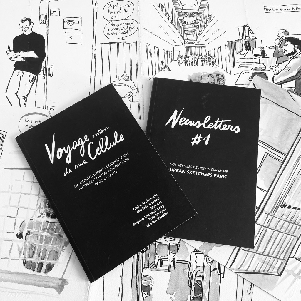 Le projet a donné lieu à la création de 2 livres : Voyage autour de ma cellule, qui relate notre vécu d’artistes intervenant dans ce lieu d’enfermement ; Newsletter #1 qui regroupe les programmes des différents ateliers proposés. Les livres sont édités par l’association Urban Sketchers Paris.